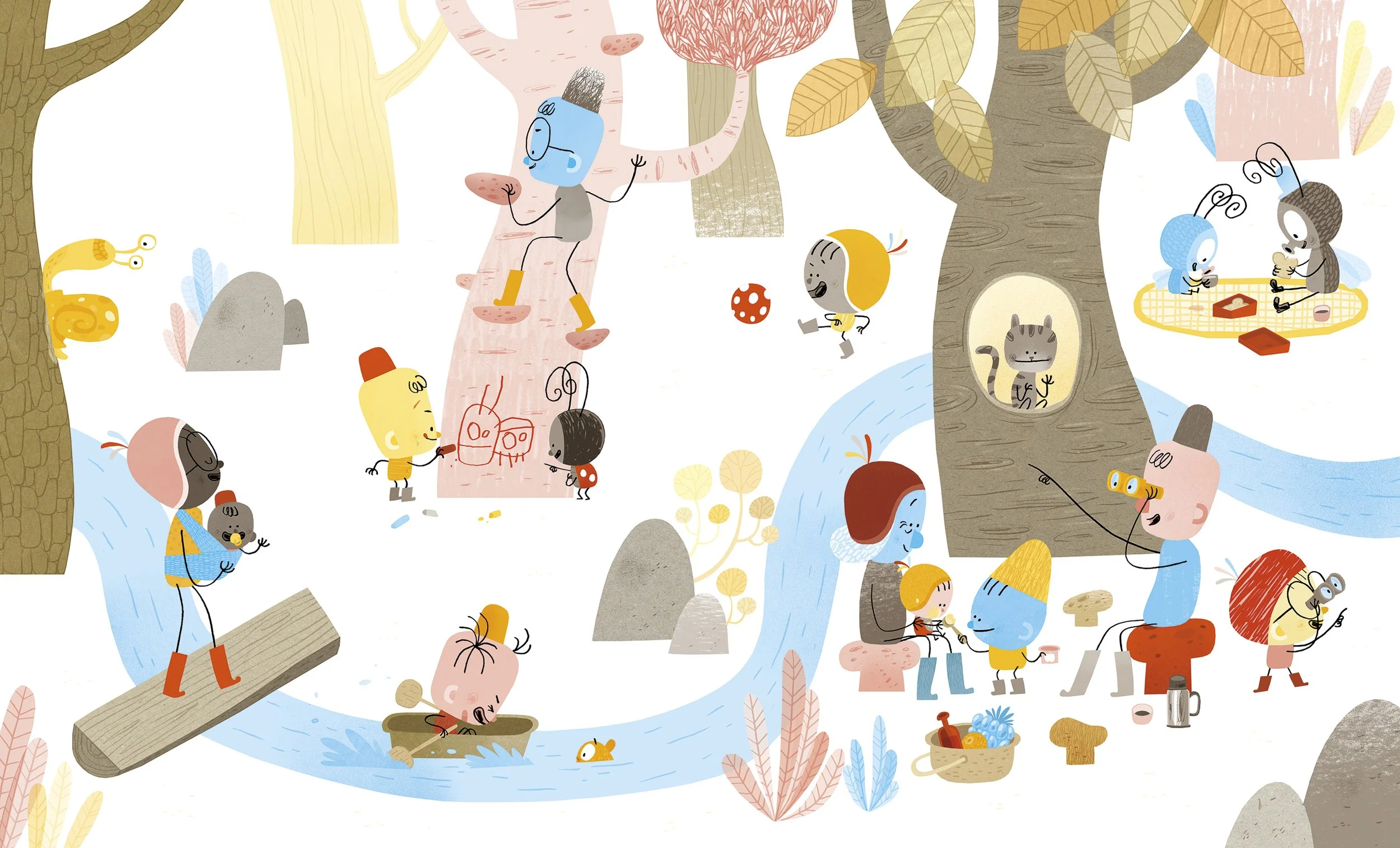 afspraakje in het bos / prentenboek ism ‘de week van het bos’ / ecoline, kleurpotlood en potlood op papier